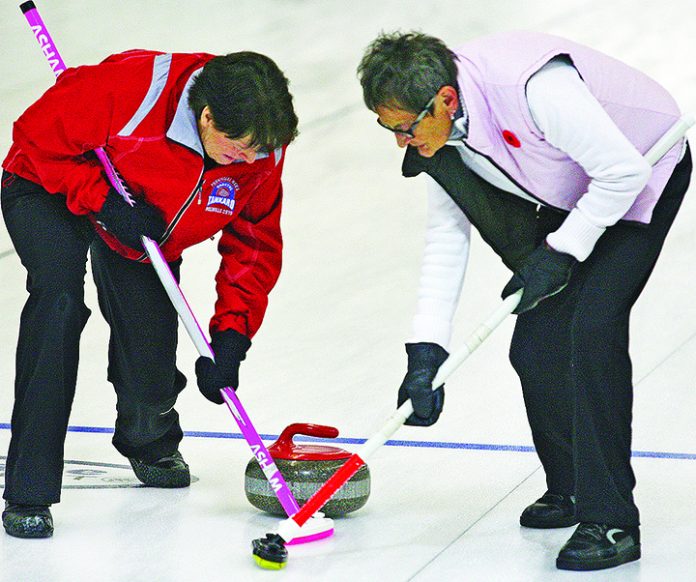 Naomi Herman and Polly Wardle put the brushes to a rock during seniors league actions at the Melville Curling Club on Nov. 9. Melville’s club will host another high profile curling event in 2017, with the Viterra Scotties Women’s Provincial Championship coming to the HCUC.