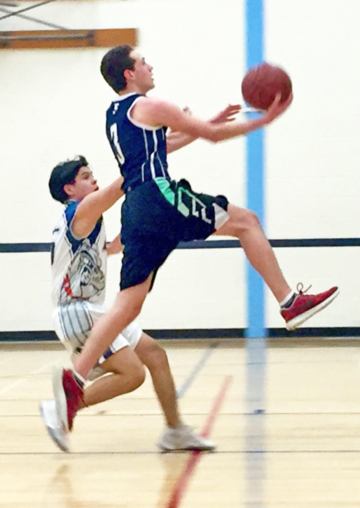 Randy Peterson from Grenfell Community High School makes a run for the basket during the boys basketball conference playoffs in Cupar.