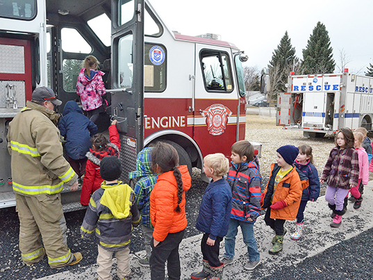 Students tour the fire trucks at Whitewood School during Fire Prevention Week.