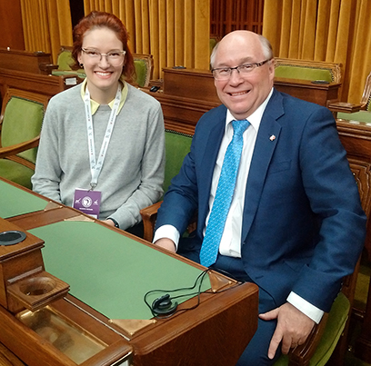 Daughters of the Vote - Brittany Sippola visits with Souris-Moose Mountain member of Parliament Robert Kitchen during her week in Ottawa. Sippola, who hails from Whitewood, was selected to represent the riding in the Daughter of the Vote event. Submitted photo