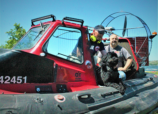 New in Saskatchewan - Water rescue base director John Maczko, Fort Qu’Appelle fire chief Dave Sabrish and Saskatchewan’s official water rescue dog, K-9 Gusztav, inaugurate construction of the province’s first tactical amphibious rescue station at Pasqua Lake.