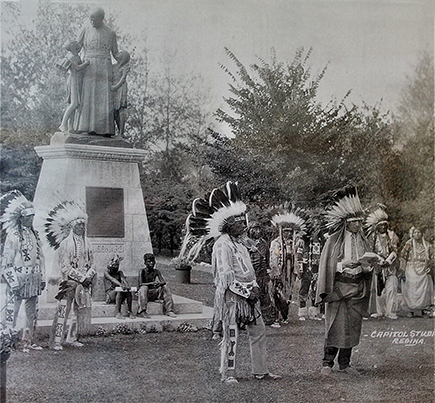 Statue unveiling - First Nations chief at the unveiling in 1927 of the statue of Joseph Hugonard which they commissioned.