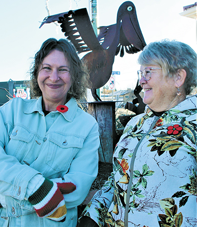 Efforts recognized - The efforts of Bloomers Mindy Friese, left and Carol Glowa, right to beautify the town with metal street sculptures at the four corners of Broadway Street and Boundary Avenue impressed judges with Communities in Bloom.