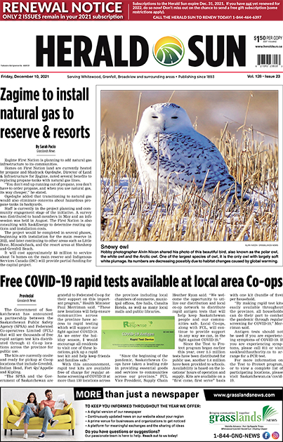 Home Herald Sun Herald Sun PDF Edition Herald Sun – December 10, 2021 Herald Sun – December 10, 2021 By Grasslands News Group - December 9, 2021 RELATED ARTICLESMORE FROM AUTHOR Whitewood-Grenfell Herald-Sun – April 17, 2026 Whitewood-Grenfell Herald-Sun – April 10, 2026 Whitewood-Grenfell Herald-Sun – April 3, 2026 Provincial News Road to the cemetery has been driven to death Alan Hustak - April 16, 2026 The washed-out road to Fort Qu’Appelle’s Lakeview Cemetery remains closed indefinitely until further engineering studies are done as Council continues to wrestle with the... LAUTNER – Shirley Ann April 15, 2026 Fort Qu’Appelle Times – April 17, 2026 April 16, 2026 Physio therapist offers personalized care for community April 16, 2026 Sedley Church receives new owners and new purpose April 16, 2026 Special Sections Hats Off To Our Local Heroes – October 11, 2024 October 10, 2024