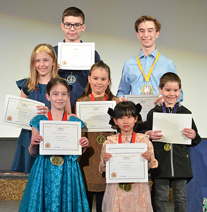 Piano Awards - Piano Awards were distributed to Mainline Music Festival participants during the finale on April 12. Front row, Brynn Tiefenbach and Elsa Luo. Middle row, Katie Malanik, Grace Dinwoodie, and Hayden Tiefenbach. Back row, Carson Raffey and Kaden Royer.