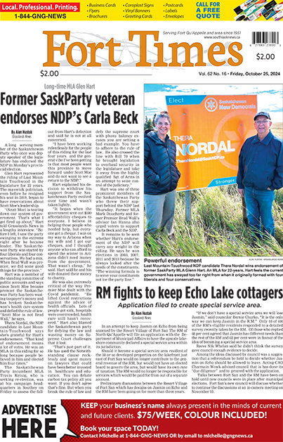 Home Fort Times Fort Times PDF Edition Fort Qu’Appelle Times – October 25, 2024 Fort Qu’Appelle Times – October 25, 2024 By Grasslands News Group - October 24, 2024 RELATED ARTICLESMORE FROM AUTHOR Fort Qu’Appelle Times – April 24, 2026 Fort Qu’Appelle Times – April 17, 2026 Fort Qu’Appelle Times – April 10, 2026 Provincial News WICKBERG – Stanley Edlin Grasslands News Group - March 5, 2025 Stan was born on Oct. 7, 1959 in Esterhazy, Sask. to Gordon and Shirley Wickberg. Growing up on the farm, he was the third... FURBER – Kenneth Walter April 1, 2026 STRATTON – Heather April 22, 2026 STEVENSON – Douglas A. April 1, 2026 Special Sections Hats Off To Our Local Heroes – October 11, 2024 October 10, 2024
