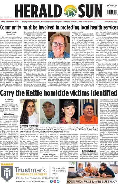 Home Herald Sun Herald Sun PDF Edition Whitewood-Grenfell Herald-Sun – February 14, 2025 Whitewood-Grenfell Herald-Sun – February 14, 2025 By Grasslands News Group - February 13, 2025 RELATED ARTICLESMORE FROM AUTHOR Whitewood-Grenfell Herald-Sun – April 17, 2026 Whitewood-Grenfell Herald-Sun – April 10, 2026 Whitewood-Grenfell Herald-Sun – April 3, 2026 Provincial News LAUTNER – Shirley Ann Grasslands News Group - April 15, 2026 It is with profound sadness we announce the passing of Shirley Ann on April 8, 2026, after a long courageous battle with cancer. Born May... New plant will provide clean water to a growing community April 16, 2026 ULMER – Matthew (Matt) Henry April 15, 2026 Fort Qu’Appelle Times – April 17, 2026 April 16, 2026 Melville Advance – April 17, 2026 April 16, 2026 Special Sections Hats Off To Our Local Heroes – October 11, 2024 October 10, 2024