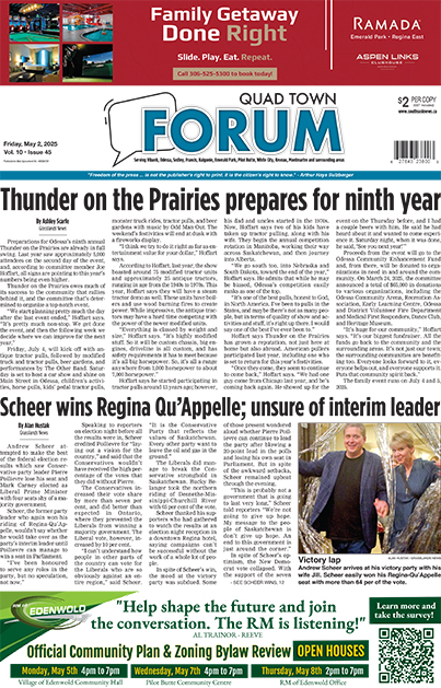 Home Quad Town Forum Quad Town PDF Edition Quad Town Forum – May 2, 2025 Quad Town Forum – May 2, 2025 By Grasslands News Group - May 1, 2025 RELATED ARTICLESMORE FROM AUTHOR Quad Town Forum – April 17, 2026 Quad Town Forum – April 10, 2026 Quad Town Forum – April 3, 2026 Provincial News FURBER – Kenneth Walter Grasslands News Group - April 1, 2026 We are sad to announce that Ken Furber passed peacefully at home in his sleep on Monday, March 30, 2026. Ken was a tenacious... WICKBERG – Stanley Edlin March 5, 2025 STEVENSON – Douglas A. April 1, 2026 ULMER – Matthew (Matt) Henry April 15, 2026 Sledge Dogs dominate at Western Canada Sledge Hockey Tournament April 16, 2026 Special Sections Hats Off To Our Local Heroes – October 11, 2024 October 10, 2024