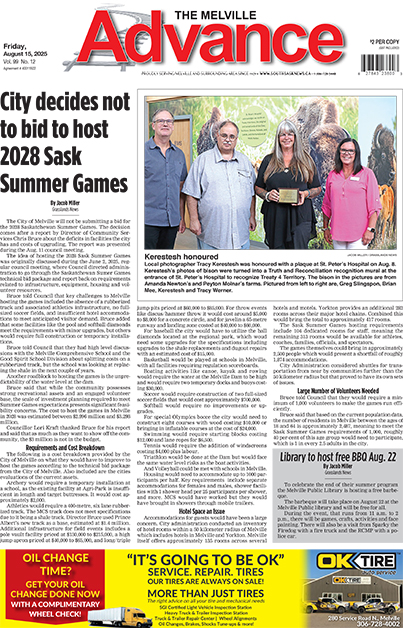Home Melville Advance Melville Advance PDF Edition Melville Advance – August 15, 2025 Melville Advance – August 15, 2025 By Grasslands News Group - August 14, 2025 RELATED ARTICLESMORE FROM AUTHOR Melville Advance – April 17, 2026 Melville Advance – April 10, 2026 Melville Advance – April 3, 2026 Provincial News LAUTNER – Shirley Ann Grasslands News Group - April 15, 2026 It is with profound sadness we announce the passing of Shirley Ann on April 8, 2026, after a long courageous battle with cancer. Born May... New plant will provide clean water to a growing community April 16, 2026 ULMER – Matthew (Matt) Henry April 15, 2026 Fort Qu’Appelle Times – April 17, 2026 April 16, 2026 Melville Advance – April 17, 2026 April 16, 2026 Special Sections Hats Off To Our Local Heroes – October 11, 2024 October 10, 2024