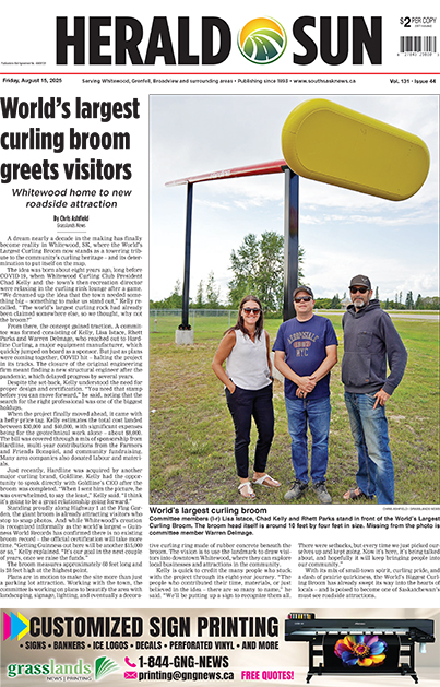 Home Herald Sun Herald Sun PDF Edition Whitewood-Grenfell Herald-Sun – August 15, 2025 Whitewood-Grenfell Herald-Sun – August 15, 2025 By Grasslands News Group - August 14, 2025 RELATED ARTICLESMORE FROM AUTHOR Whitewood-Grenfell Herald-Sun – April 17, 2026 Whitewood-Grenfell Herald-Sun – April 10, 2026 Whitewood-Grenfell Herald-Sun – April 3, 2026 Provincial News LAUTNER – Shirley Ann Grasslands News Group - April 15, 2026 It is with profound sadness we announce the passing of Shirley Ann on April 8, 2026, after a long courageous battle with cancer. Born May... New plant will provide clean water to a growing community April 16, 2026 ULMER – Matthew (Matt) Henry April 15, 2026 Fort Qu’Appelle Times – April 17, 2026 April 16, 2026 Melville Advance – April 17, 2026 April 16, 2026 Special Sections Hats Off To Our Local Heroes – October 11, 2024 October 10, 2024