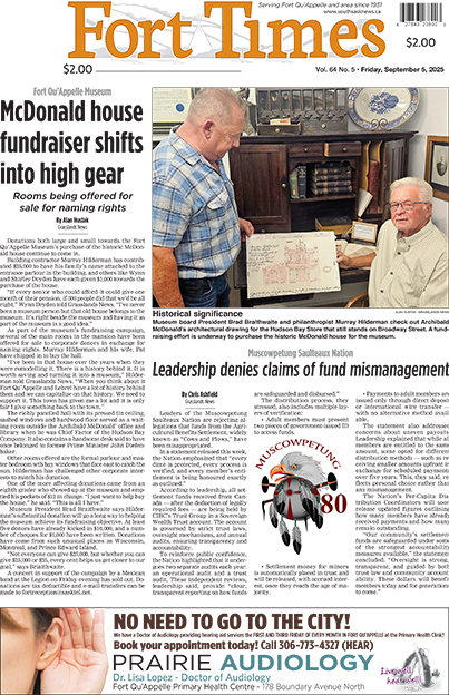Home Fort Times Fort Times PDF Edition Fort Qu’Appelle Times – September 5, 2025 Fort Qu’Appelle Times – September 5, 2025 By Grasslands News Group - September 4, 2025 RELATED ARTICLESMORE FROM AUTHOR Fort Qu’Appelle Times – May 1, 2026 Fort Qu’Appelle Times – April 24, 2026 Fort Qu’Appelle Times – April 17, 2026 Provincial News Five arrested in major drug bust Ryan Kiedrowski - April 27, 2026 NOTE: Grasslands News will have more on this developing story in this week's paper and online. RCMP have provided the following release with regards... Bangor, Yorkton, and two rural residences raided April 30, 2026 CURRIE – Bonnie April 29, 2026 SCHINDEL – William April 29, 2026 Fort Qu’Appelle Times – May 1, 2026 April 30, 2026 Special Sections Hats Off To Our Local Heroes – October 11, 2024 October 10, 2024