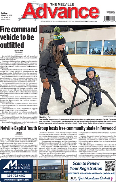 Home Melville Advance Melville Advance PDF Edition Melville Advance – March 6, 2026 Melville Advance – March 6, 2026 By Grasslands News Group - March 5, 2026 RELATED ARTICLESMORE FROM AUTHOR Melville Advance – May 1, 2026 Melville Advance – April 24, 2026 Melville Advance – April 17, 2026 Provincial News Five arrested in major drug bust Ryan Kiedrowski - April 27, 2026 NOTE: Grasslands News will have more on this developing story in this week's paper and online. RCMP have provided the following release with regards... CURRIE – Bonnie April 29, 2026 Multi-Agency chaos unfolds on Balgonie overpass April 25, 2026 SCHINDEL – William April 29, 2026 KOLMAN – David Allen April 29, 2026 Special Sections Hats Off To Our Local Heroes – October 11, 2024 October 10, 2024