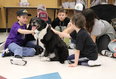 A Special Guest - Students at Kennedy Langbank School were able to visit with Reggie the dog and learn more about the benefits of spending time with pets during a Wellness Day session with the Angels of Hope Rescue. (Submitted/Grasslands News)