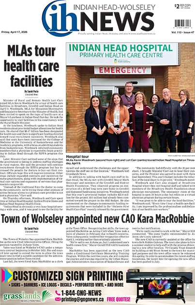 Home IH News IH PDF Edition Indian Head-Wolseley News – April 17, 2026 Indian Head-Wolseley News – April 17, 2026 By Grasslands News Group - April 16, 2026 RELATED ARTICLESMORE FROM AUTHOR Indian Head-Wolseley News – April 10, 2026 Indian Head-Wolseley News – April 3, 2026 Indian Head-Wolseley News – March 27, 2026 Provincial News Fort Qu’Appelle Times – April 17, 2026 Grasslands News Group - April 16, 2026 Melville Advance – April 17, 2026 April 16, 2026 New plant will provide clean water to a growing community April 16, 2026 LAUTNER – Shirley Ann April 15, 2026 Carry the Kettle elects new chief April 16, 2026 Special Sections Hats Off To Our Local Heroes – October 11, 2024 October 10, 2024