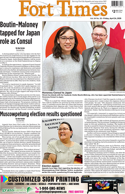 Home Fort Times Fort Times PDF Edition Fort Qu’Appelle Times – April 24, 2026 Fort Qu’Appelle Times – April 24, 2026 By Grasslands News Group - April 23, 2026 RELATED ARTICLESMORE FROM AUTHOR Fort Qu’Appelle Times – April 17, 2026 Fort Qu’Appelle Times – April 10, 2026 Fort Qu’Appelle Times – April 3, 2026 Provincial News FURBER – Kenneth Walter Grasslands News Group - April 1, 2026 We are sad to announce that Ken Furber passed peacefully at home in his sleep on Monday, March 30, 2026. Ken was a tenacious... WICKBERG – Stanley Edlin March 5, 2025 STRATTON – Heather April 22, 2026 STEVENSON – Douglas A. April 1, 2026 MOHR – Jacqueline Kay April 22, 2026 Special Sections Hats Off To Our Local Heroes – October 11, 2024 October 10, 2024