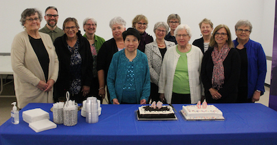 Marking a milestone - Past and present members of the Kipling and District Arts Council were on hand to celebrate their 40th Anniversary on Friday. Pictured left to right, are, Marjorie Bates, Matty O’Connell, Joanne O’Sullivan, Carol Johnston, Valerie Bell, Sylvia Ku, Cheryl Ferch, Pat Widdup, Deborah Nordal, Florence Poirier, Elaine Pusch, Joanne Cunningham, Mona Lynn Stender. (Connie Schwalm/Grasslands News)