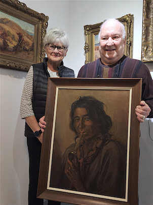 Donated art - Sharon and Gary Read with one of three Henderson paintings they have donate to the Fort Qu’Appelle Heritage Museum. The art will be on display during the town’s 75th Anniversary. (Alan Hustak/Grasslands News)