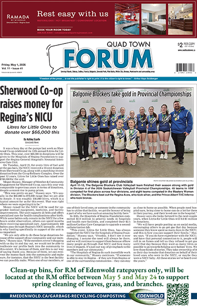 Home Quad Town Forum Quad Town PDF Edition Quad Town Forum – May 1, 2026 Quad Town Forum – May 1, 2026 By Grasslands News Group - April 30, 2026 RELATED ARTICLESMORE FROM AUTHOR Quad Town Forum – April 24, 2026 Quad Town Forum – April 17, 2026 Quad Town Forum – April 10, 2026 Provincial News Five arrested in major drug bust Ryan Kiedrowski - April 27, 2026 NOTE: Grasslands News will have more on this developing story in this week's paper and online. RCMP have provided the following release with regards... CURRIE – Bonnie April 29, 2026 Multi-Agency chaos unfolds on Balgonie overpass April 25, 2026 KOLMAN – David Allen April 29, 2026 Carry the Kettle elects new chief April 16, 2026 Special Sections Hats Off To Our Local Heroes – October 11, 2024 October 10, 2024